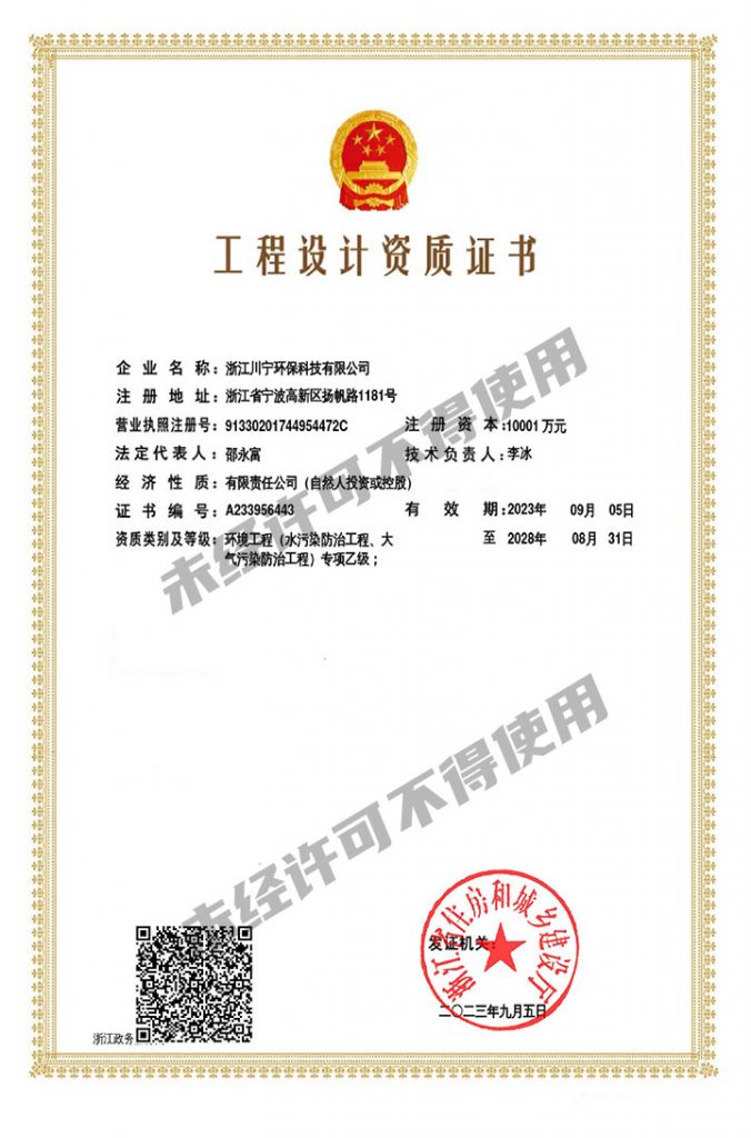 雛鷹摔了無(wú)數(shù)次,才有翱翔天空的本領(lǐng),鳳凰忍受住烈火焚燒,才有了涅槃重生。隨著時(shí)間推進(jìn),浙江川寧環(huán)??萍加邢薰救w員工不畏艱難,鍥而不舍,不斷進(jìn)取,于2023年9月5日,順利通過(guò)浙江省住建廳的資格審查,成功取得環(huán)境工程水污染防治工程專(zhuān)項(xiàng)乙級(jí)/大氣污染防治工程專(zhuān)項(xiàng)乙級(jí)設(shè)計(jì)資質(zhì)!也是寧波市首家獲此環(huán)境工程設(shè)計(jì)資質(zhì)的企業(yè)。